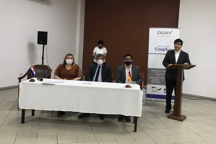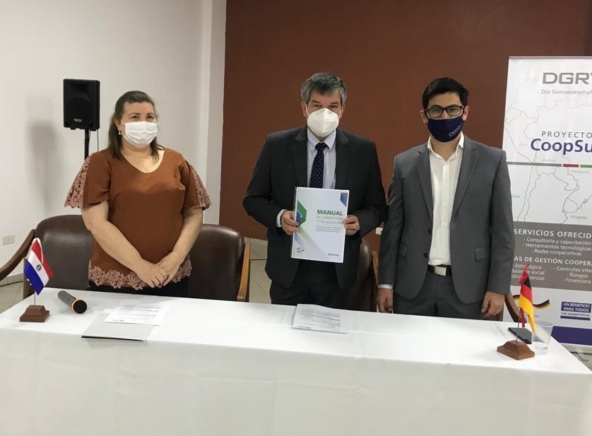 El pasado 15 del corriente en la Quinta Ykua Satí, con la presencia del Presidente del INCOOP Lic. Pedro Elías Löblein Saucedo e invitados especiales, se realizó el acto del Convenio de Cooperación INCOOP-DGRV, donde se hizo entrega del «Manual de Supervisión y Fiscalización de los Sistemas de Prevención de Lavado de Activos y Financiamiento del Terrorismo, basado en riesgos»