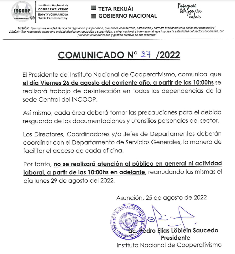Instituto Nacional de Cooperativismo en uso de sus atribuciones legales, conferidas en la Ley Nº