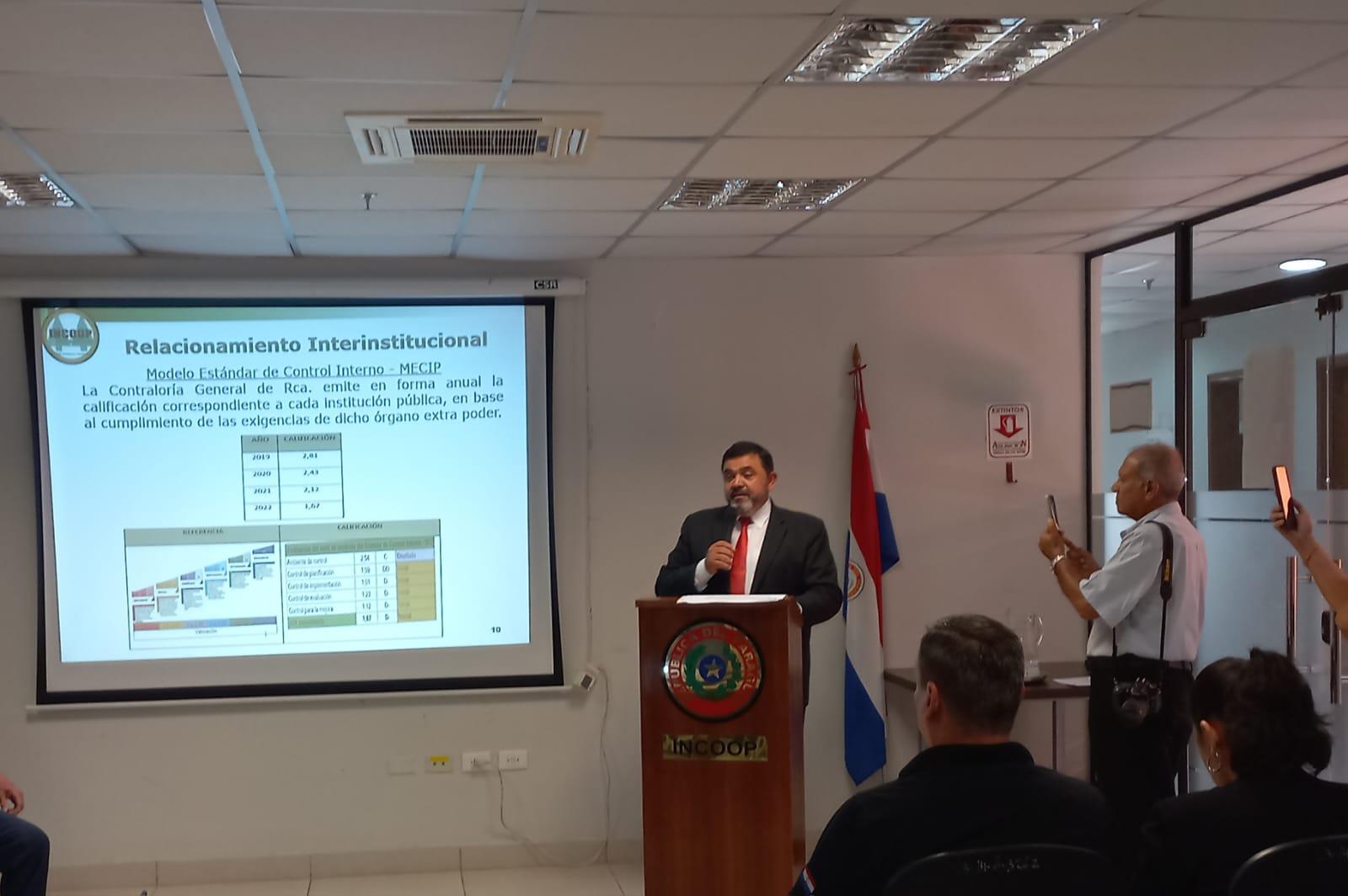 Asi mismo, participaron de la actividad el Econ. Blás Cristaldo, Presidente INCOOP Período 2024-2027, y los flamantes Miembros del Consejo Directivo por el periodo mencionado precedentemente: Abg. Fabia Cáceres, por el Sector de Ahorro y Crédito de Cooperativas y el Ing. Carlos Romero Roa, Representante de la CONPACOOP LTDA.