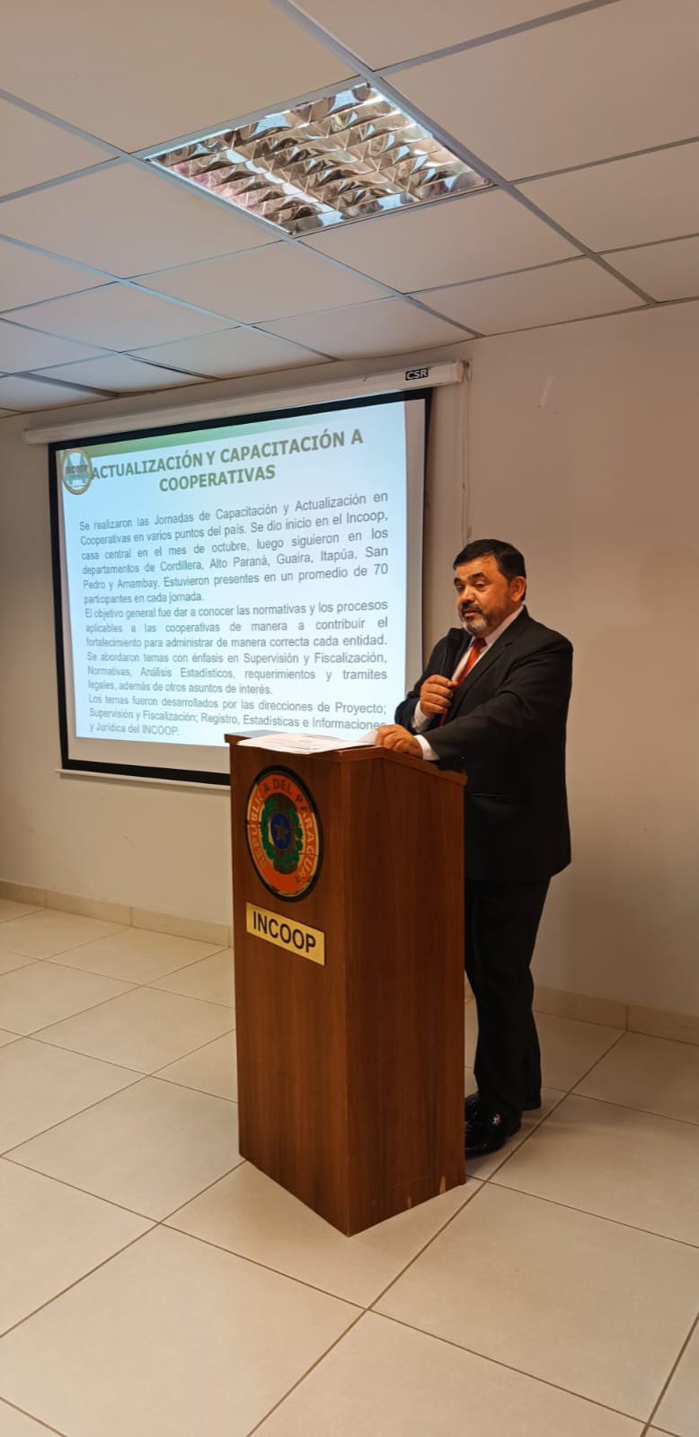 Las palabras de bienvenida estuvieron a cargo del Presidente, Econ. Blas B. Cristaldo Moniz en tanto la capacitación estuvo a cargo de la Dirección de Registros, Estadísticas e Informaciones conjuntamente con la Dirección de Proyectos Cooperativos.