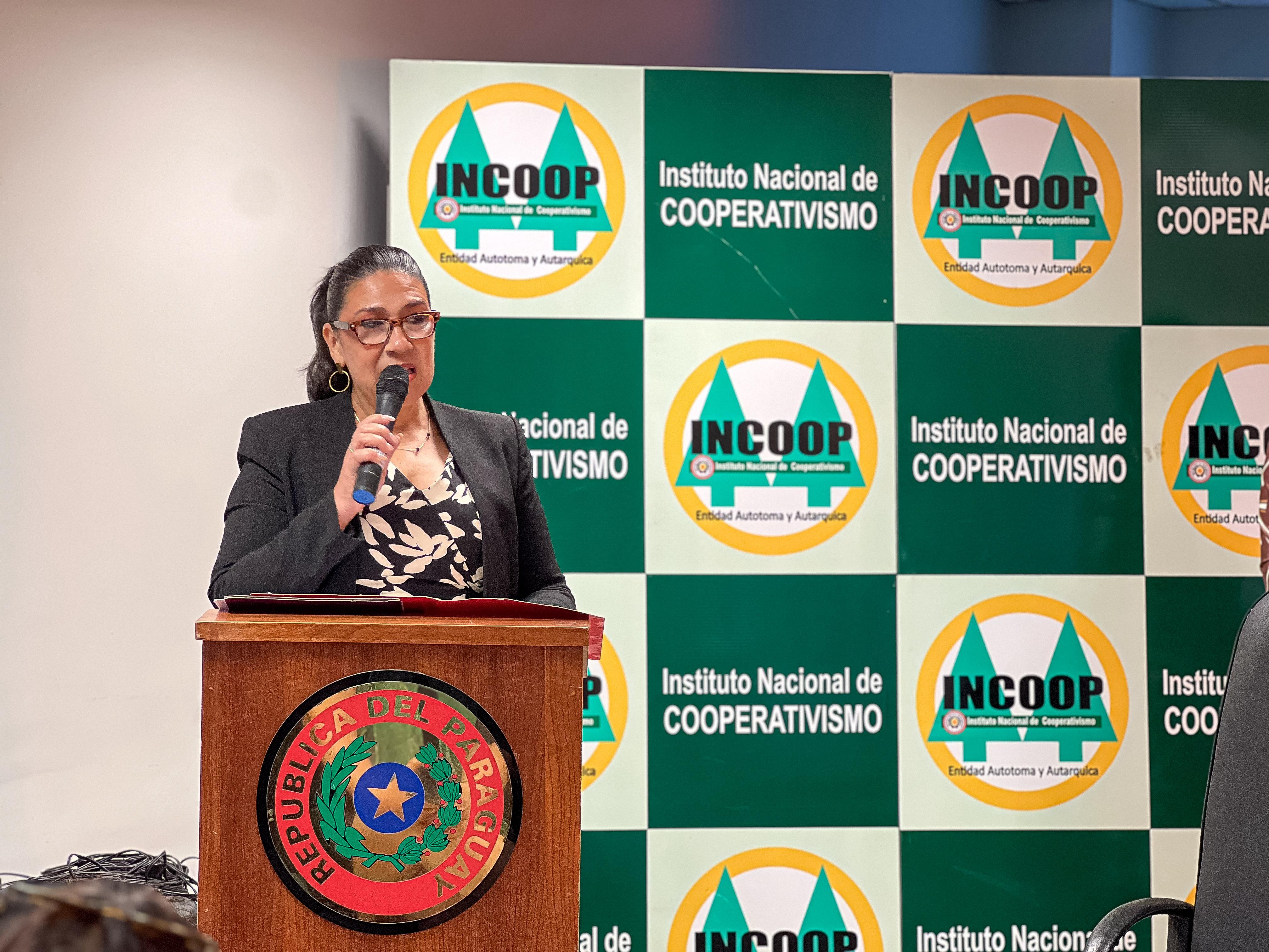 Cabe señalar que los miembros del Consejo Directivo del INCOOP son: Fabia Cáceres, Representante del Sector de Ahorro y Crédito Marta Méndez de Bareiro, Representante del Sector de Producción Estela Vallena, Representante del Sector Otros Tipos Carlos Romero Roa, Representante del Sector Confederaciones.