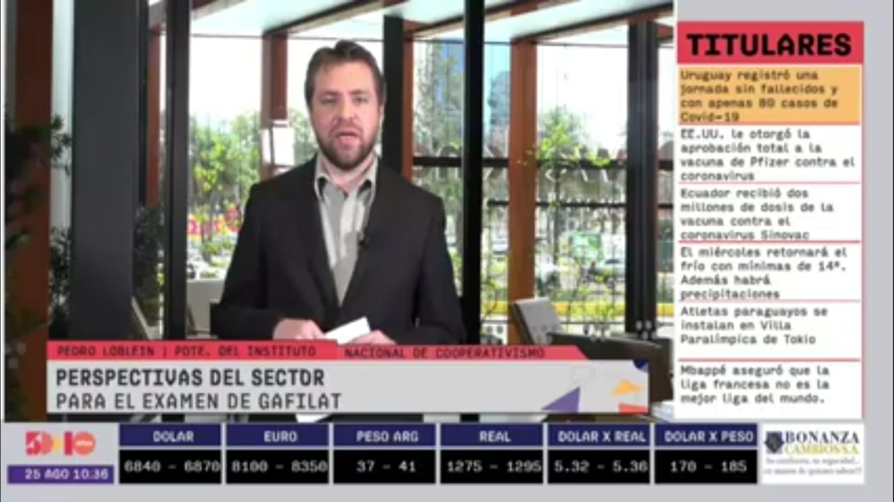 El Lic. Pedro Löblein, Presidente del Instituto Nacional de Cooperativismo INCOOP, fue entrevistado por 5 días tv durante el programa MONITOR ECONÓMICO las preguntas se centraron sobre la evaluación GAFILAT y comportamiento financiero de las cooperativas de ahorro y crédito.