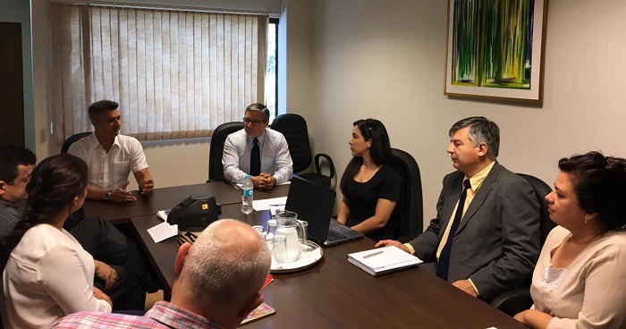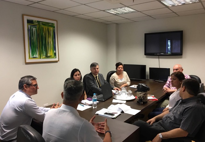 En la sala de Sesiones del Consejo Directivo del Instituto Nacional de Cooperativismo (INCOOP) el Presidente, Lic. Félix Hernán Jiménez Castro, los Directores y Jefe de Departamento, la Directora General Lic. María Mercedes Ortega, el Director de Proyectos Cooperativos Econ. Fernando Gamarra, el Director de Registros Estadísticas e Informaciones Econ. Regis Gamarra y la Jefa de Dpto. de Análisis Financiero Lic. Vanesa Carrera, mantuvieron una reunión de trabajo con el Coordinador Ejecutivo Ing. Agr. Mario León y su equipo técnico del Sistema Integrado de Gestion para el desarrollo Agropecuario y Rural (SIGEST).
