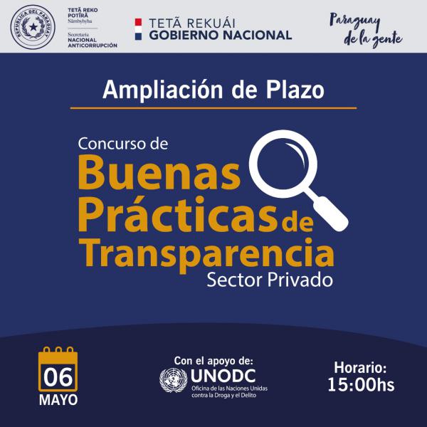 La Secretaría Nacional Anticorrupción (SENAC) amplía el plazo para la entrega de propuestas al Concurso de Buenas Prácticas para el Sector Privado, en Transparencia e Integridad. Las inscripciones están abiertas y se encuentran dirigidas a asociaciones y cooperativas, academias y empresas del sector privado.