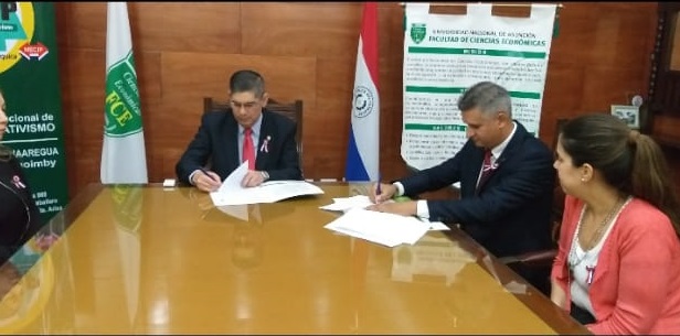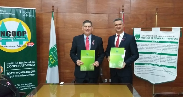 El Presidente del Instituto Nacional de Cooperativismo INCOOP Lic. Félix Hernán Jiménez Castro y el Decano de la Facultad de Ciencias Económicas Prof. Dr. Roberti Daniel González Martínez firmaron un Convenio Marco de Cooperación entre el INCOOP- FCE (UNA). El acto se llevó a cabo el miércoles 8 del corrientes a las 17:00 hs. en el salón de eventos de la Facultad de Ciencias Económicas.