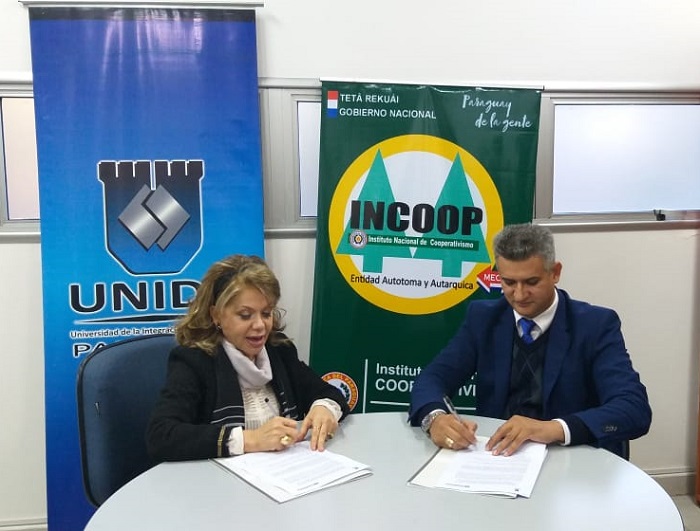 El acto se llevó a cabo el lunes 3 del corrientes mes a las 16:00 h en el Despacho de la Rectora. Entre los objetivos del convenio podemos mencionar: Cooperar en la coordinación y ejecución de actividades que contribuyan al desarrollo académico de Curso de Capacitación Seminarios, Cursos de Grado, Posgrados, (Especialización, Maestrías y Doctorados), La UNIDA podrá beneficiar a familiares, cónyuges e hijos/as de funcionarios/as, del INCOOP, con descuentos aplicables a: