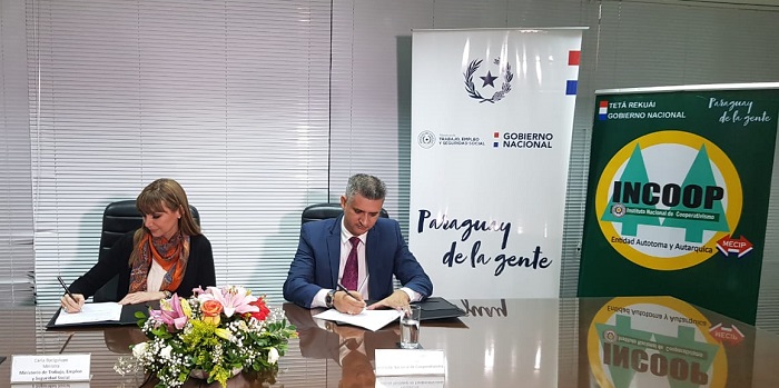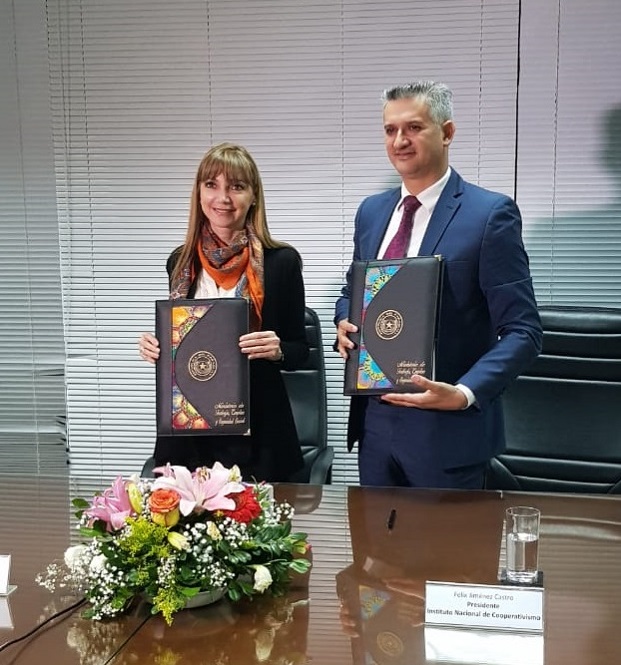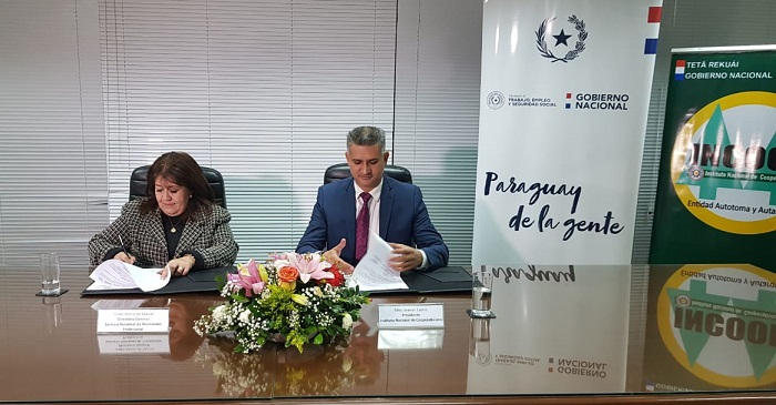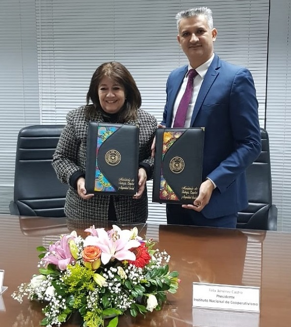 Rubricaron el referido acuerdo, el Presidente del Instituto Nacional de Cooperativismo, Félix Hernán Jiménez Castro, la Ministra del MTESS, Carla Bacigalupo; la Directora General del SNPP, Addis Merlo de Maciel