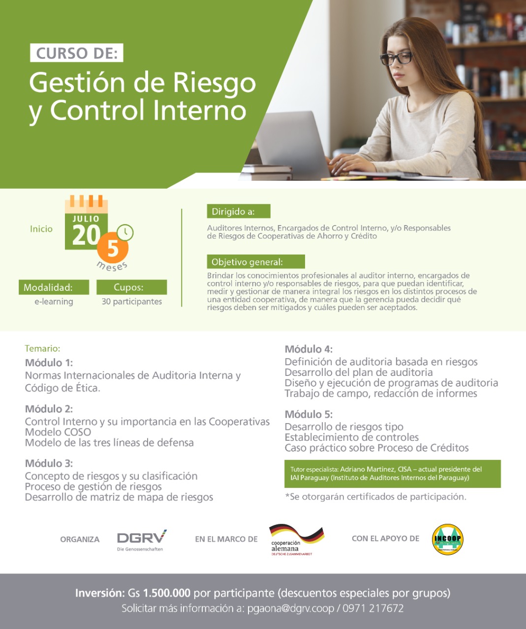 Curso de Gestión de Riesgo y Control Interno dirigido a Auditores Internos, Encargados de Control Interno, y/o Responsables de Riesgos de Cooperativas de Ahorro y Crédito