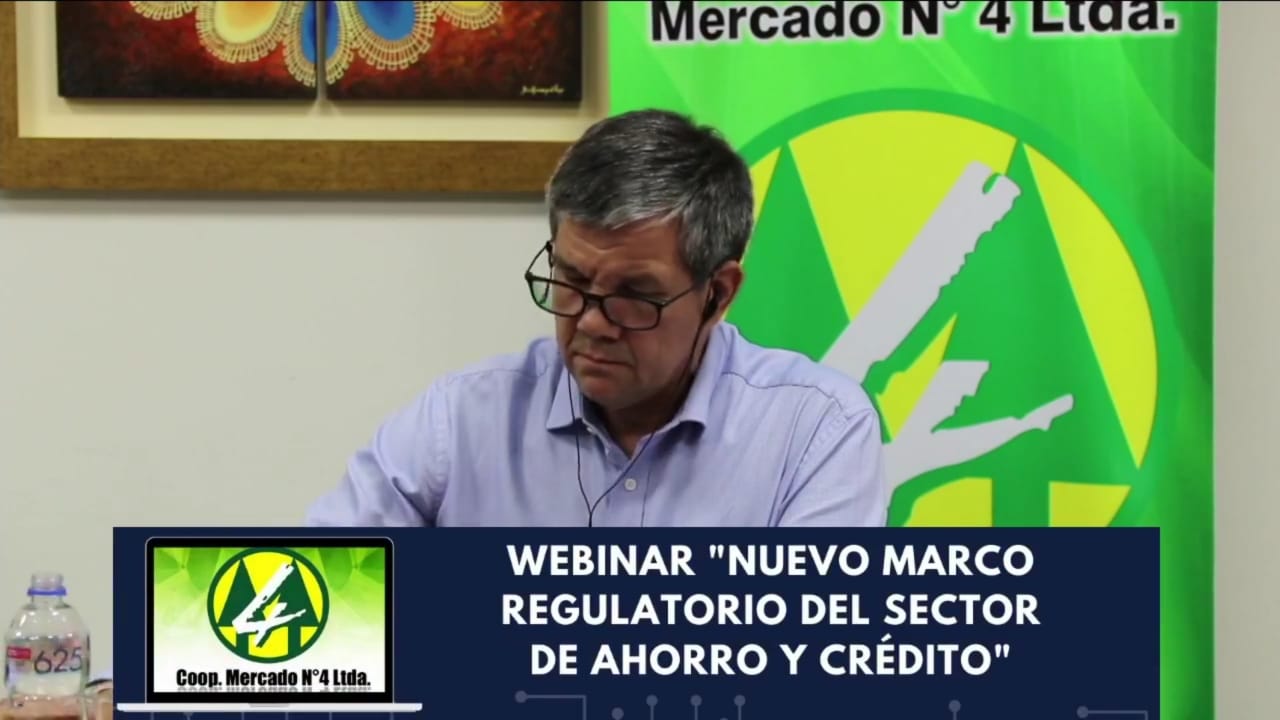 El Presidente del Instituto Nacional de Cooperativismo Lic. Pedro Löblein, participo como expositor de una Conferencia Webinar organizada por la Cooperativa Mercado Nro. 4 Ltda., el martes 10 a las 18 horas, dirigido a Gerentes, Técnicos, Contadores y Dirigentes sobre el tema “NUEVO MARCO REGULATORIO DEL SECTOR DE AHORRO Y CREDITO”
