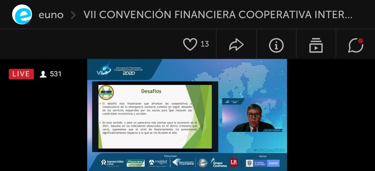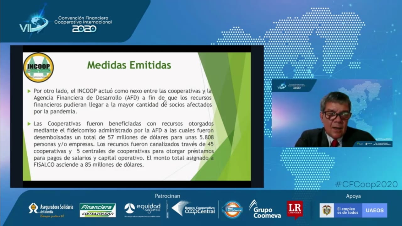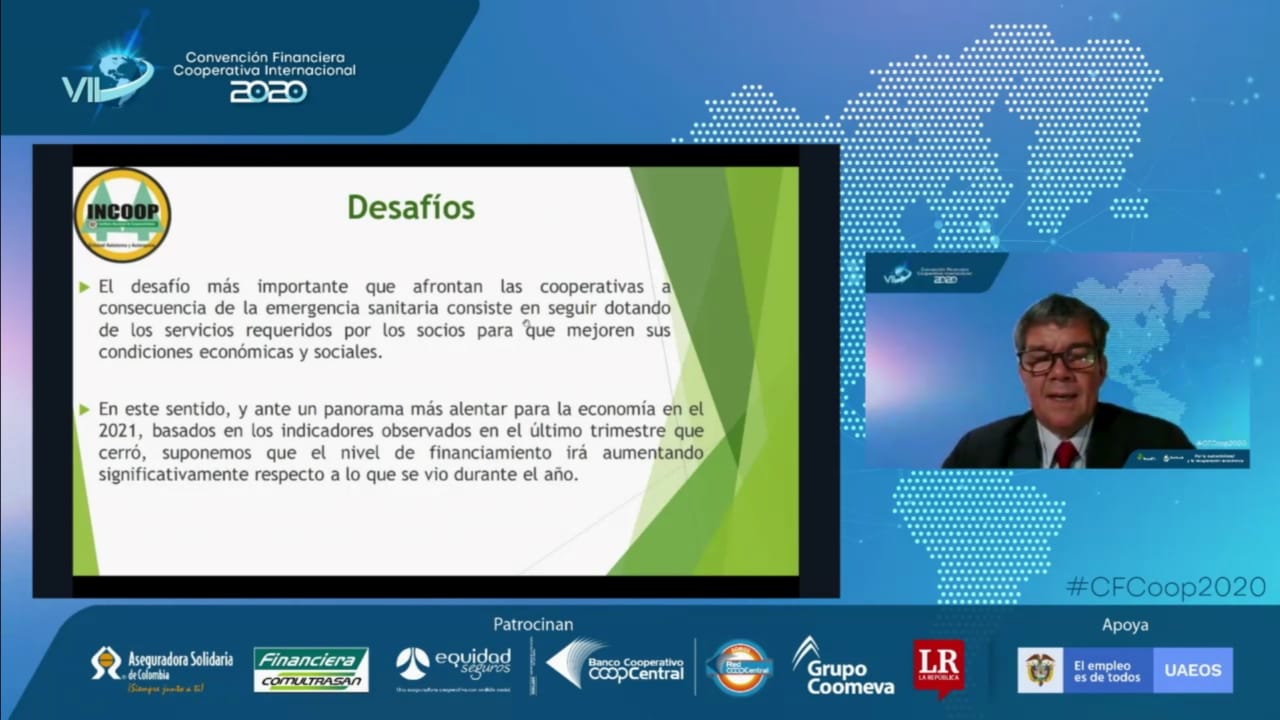 El Lic. Pedro Löblein Presidente del Instituto Nacional de Cooperativismo INCOOP, participo el día de ayer de la VII CONVENCIÓN FINANCIERA COOPERATIVA INTERNACIONAL 2020, que fue realizada en forma virtual, fue organizada por La Junta Directiva de la Federación Colombiana de Cooperativas de Ahorro y Crédito- FECOLFIN , y el Consejo Mundial de Cooperativas de Ahorro y Crédito-WOCCU con el lema “Por la sostenibilidad y la recuperación económica” , entre los temas tratados en la reunión podemos mencionar.
